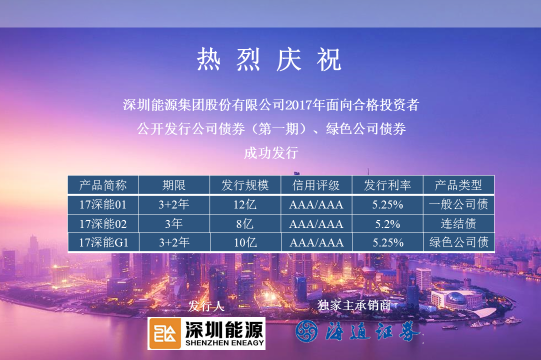 2017年11月,深圳能源在深交所发行30亿元公司债券。