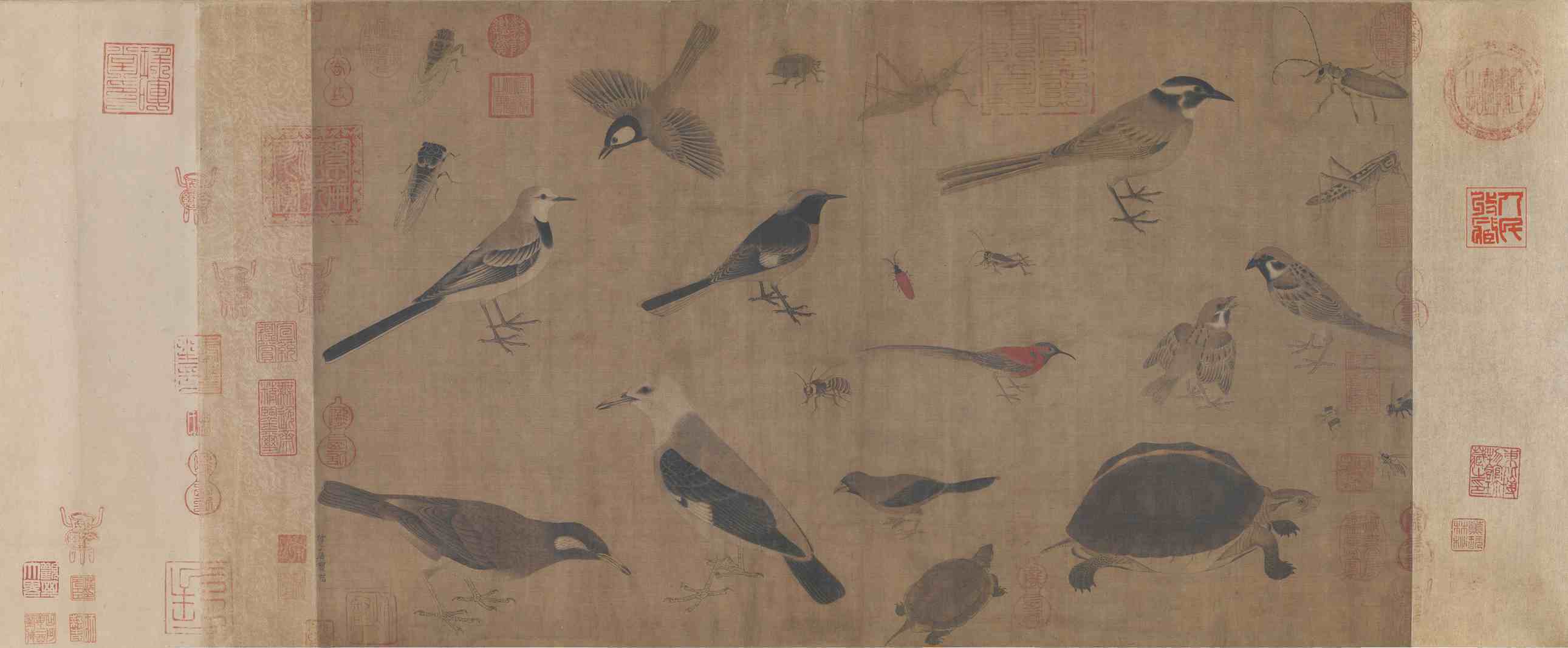 禽鸟是中国传统绘画中重要的表现对象,多与花木结合,因此形成花鸟画科。以五代时期“黄家富贵”和“徐熙野逸”的两大风格为基础,不断演绎发展,呈现出纷繁多样的绘画面貌。其中,“黄家富贵”指黄筌所作的院体花鸟,多写禁中珍禽瑞鸟,奇花怪石、富丽堂皇,其画风延续将近百年,至宋,当时花鸟皆以“黄家体制为准”。宋代迎来了花鸟画繁荣发展的高峰期,涌现出赵佶、赵孟坚等一大批杰出画家,为后世留下大量花鸟画珍品,在中国绘画史上产生深远影响。到了元代,花鸟画在承继前代院体基础之外,还出现水墨花鸟画,即墨花墨禽,侧重于笔墨技法的探求,使花鸟画变得更为潇洒简逸,且与诗、书、画融为一体。其中影响最大的是赵孟頫等,在水墨技艺上下功夫,成为明清水墨写意画发展的重要铺垫。
